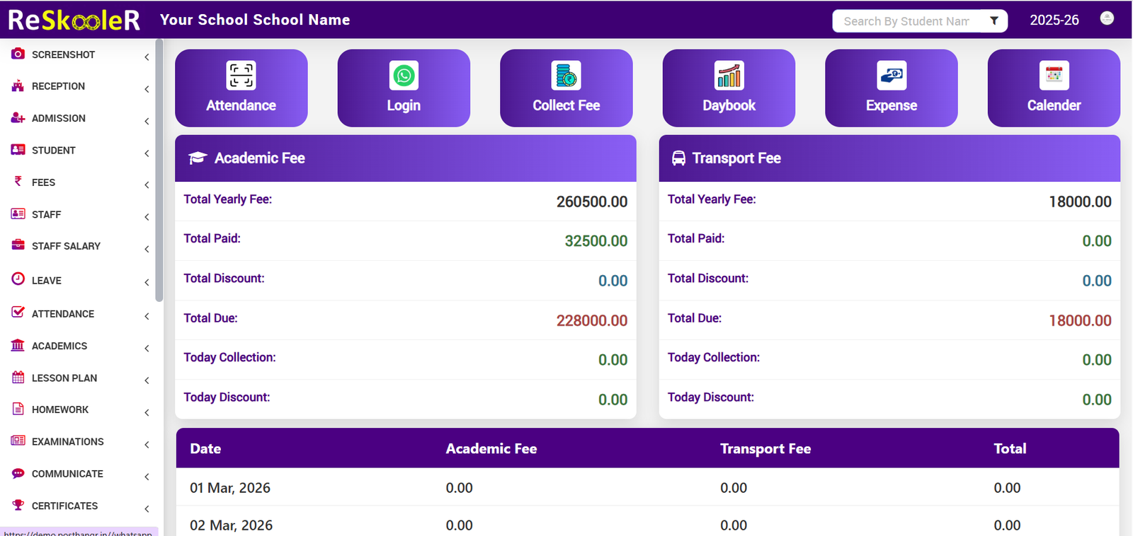 This is a online education and school management software to include all activity of the students such as fees collection, attendance, marksheet, transfer certificate etc.